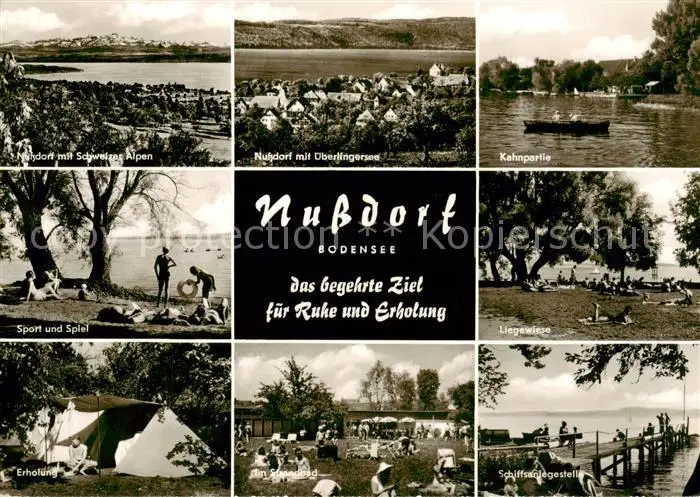 73830856 Nussdorf_ueberlingen Panorama ueberlingersee Kahnpartie Sport und Spiel Liegewiese Erholung Schiffsanlegestelle Nussdorf ueberlingen postalisch gelaufen 1966 Erhaltung siehe scans [FriedD77] [Frierer ]