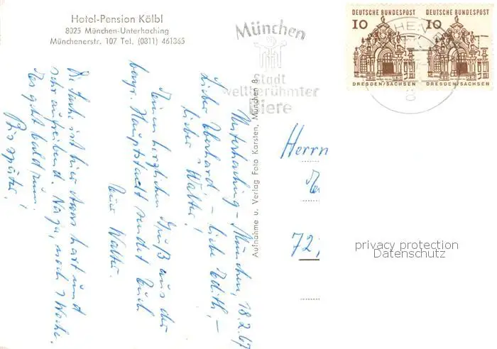 73830858 Unterhaching Hotel Pension Koelbl Bar Gaststube Unterhaching postalisch gelaufen 1967 Erhaltung siehe scans [FriedD77] [Frierer ]