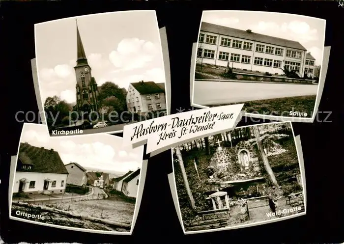 73830865 Hasborn-Dautweiler_Tholey Kirchpartie Schule Ortspartie Wald Grotte postalisch nicht gelaufen nach 1965 Erhaltung siehe scans [FriedD77] [Frierer ]