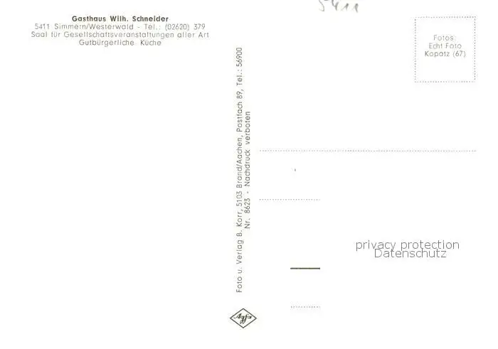 73830927 Simmern_Westerwald Panorama Gasthaus Schneider Simmern_Westerwald postalisch nicht gelaufen nach 1965 Erhaltung siehe scans [FriedD77] [Frierer ]
