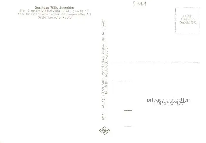 73830943 Simmern_Westerwald Panorama Gasthaus Schneider Simmern_Westerwald postalisch nicht gelaufen nach 1965 Erhaltung siehe scans [FriedD77] [Frierer ]