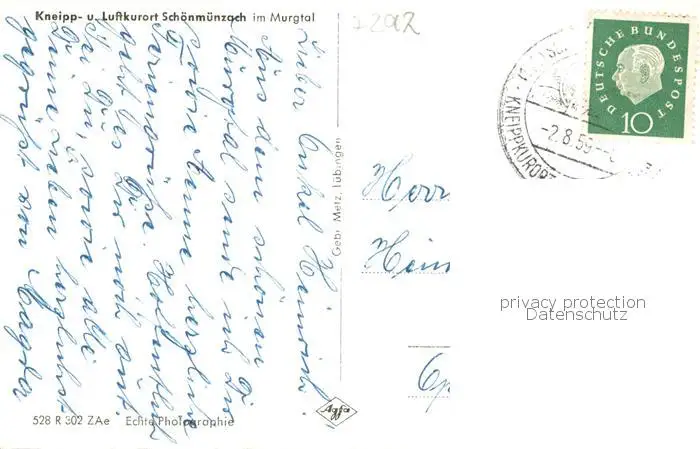 73831722 Schoenmuenzach im Murgtal Panorama Schoenmuenzach postalisch gelaufen 1959 Erhaltung siehe scans [WerneD78] [WernPID7 ]