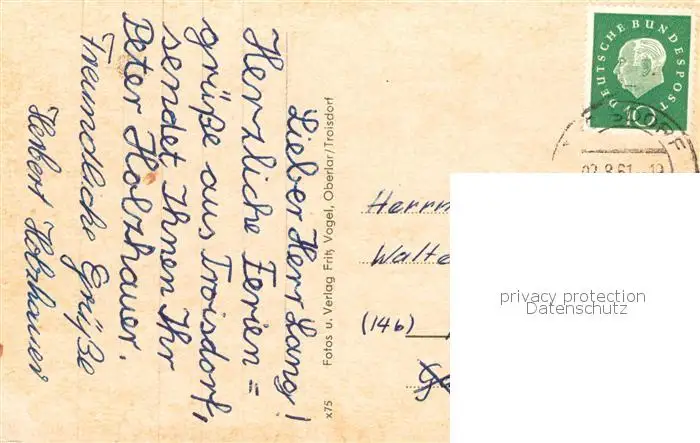 73831728 Troisdorf Roemerstrasse Poststrasse Kronprinzenstrasse Frankfurter Strasse Troisdorf postalisch gelaufen 1961 Erhaltung siehe scans [WerneD78] [WernPID7 ]