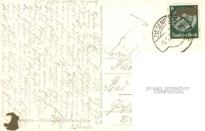 73831752 Ziegenrueck_Thueringen Blick von Moellers Ruhe Ziegenrueck Thueringen postalisch gelaufen 1921-1965 Erhaltung siehe scans [FriedD77] [Frierer ]