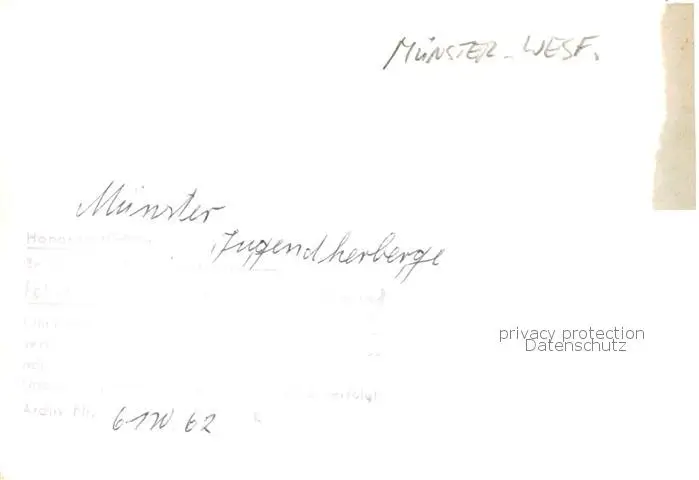73831989 Muenster_Westfalen Jugendherberge Muenster_Westfalen postalisch nicht gelaufen 1962 Verlagsrohabzug (keine Postkartenrueckseite) Erhaltung siehe scans [WerneD78] Verlagsrohabzug (keine Postkartenrueckseite)[WernPID7 ]