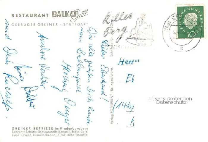73832036 Stuttgart Restaurant Balkan Grill Gastraum Stuttgart postalisch gelaufen 1921-1965 Erhaltung siehe scans [WerneD78] [WernPID7 ]