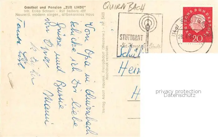 73832538 Quirnbach_Westerwald Gasthof Pension Zur Linde Panorama Schwimmbad Quirnbach_Westerwald postalisch gelaufen 1960 Erhaltung siehe scans [WerneD78] [WernPID7 ]