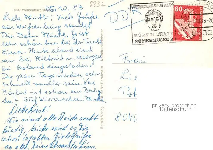 73833088 Weissenburg__Bayern Panorama Kirche Schwimmbad Strasse postalisch gelaufen 1983 Erhaltung siehe scans [FriedD77] [Frierer ]