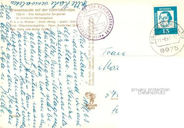73833117 Ofterschwang Wiesenbaude auf der Kahlrueckenalpe Ofterschwang postalisch gelaufen 1963 Erhaltung siehe scans [FriedD77] [Frierer ]