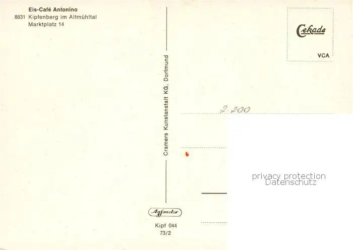73833119 Kipfenberg_Altmuehltal Eis Cafe Antonino Kipfenberg Altmuehltal postalisch nicht gelaufen nach 1965 Erhaltung siehe scans [FriedD77] [Frierer ]