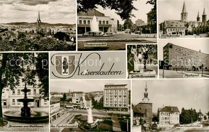AK / Ansichtskarte 73833156 Kaiserslautern Fackelrondel Stiftskirche Brunnen am Rathaus Martinskirche Postamt Kaiserslautern