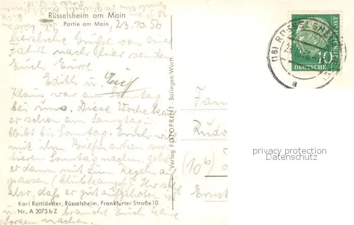 73833177 Ruesselsheim_Main Partie am Main Ruesselsheim Main postalisch gelaufen 1956 Erhaltung siehe scans [WerneD78] [WernPID7 ]