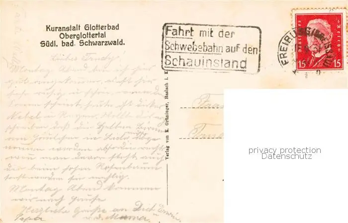 73833194 Glottertal_Schwarzwald Kuranstalt Glotterbad postalisch gelaufen 1931 Erhaltung siehe scans [WerneD78] [WernPID7 ]