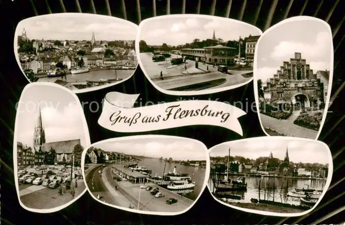 AK / Ansichtskarte 73833197 Flensburg_DE Hafen Stadttor Kirche Marktplatz Uferstrasse
