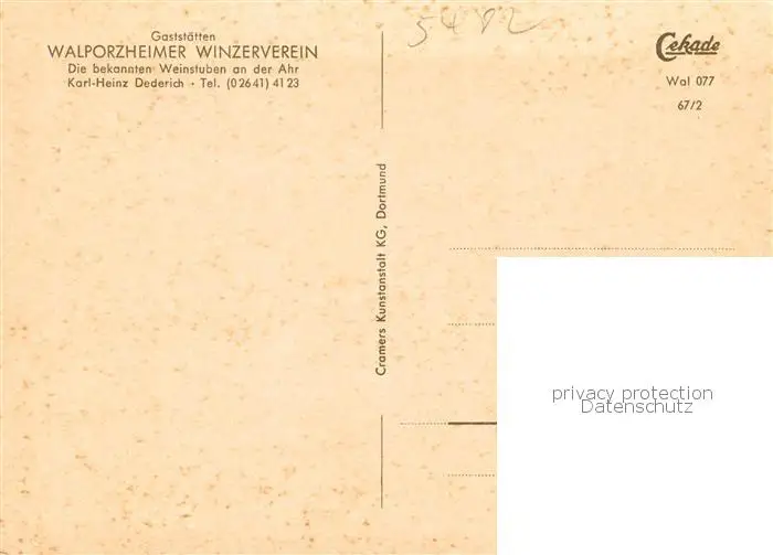 73834152 Walporzheim Gaststaetten Walporzheimer Winzerverein Walporzheim postalisch nicht gelaufen 1967 Erhaltung siehe scans [FriedD77] [Frierer ]
