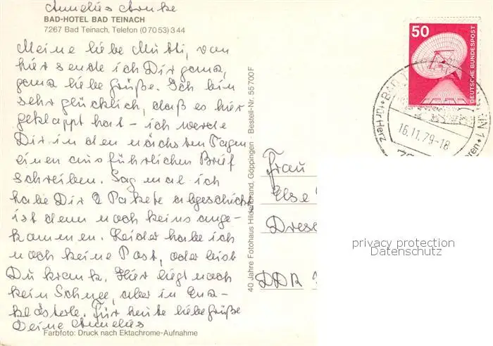 73834964 Bad_Teinach-Zavelstein Hotel Bad Teinach Bad_Teinach-Zavelstein postalisch gelaufen 1979 Erhaltung siehe scans [FriedD77] [Frierer ]