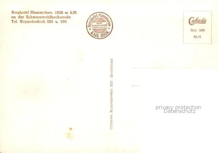 73834966 Mummelsee Berghotel Mummelsee Mummelsee postalisch nicht gelaufen nach 1965 Erhaltung siehe scans [FriedD77] [Frierer ]