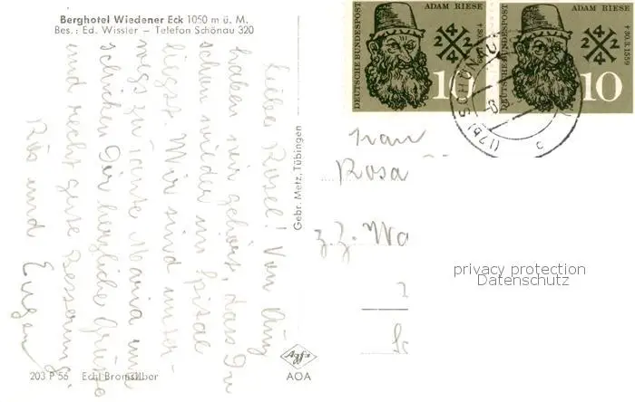 73835043 Wieden_Schwarzwald Berghotel Wiedener Eck Blick vom Knoepflesbrunnen Panorama Wieden Schwarzwald postalisch gelaufen 1921-1965 Erhaltung siehe scans [WerneD78] [WernPID7 ]