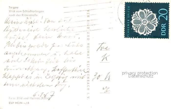 73835063 Torgau Blick vom Schlosstorbogen auf die Ritterstrasse Torgau postalisch gelaufen 1967 Erhaltung siehe scans [WerneD78] [WernPID7 ]
