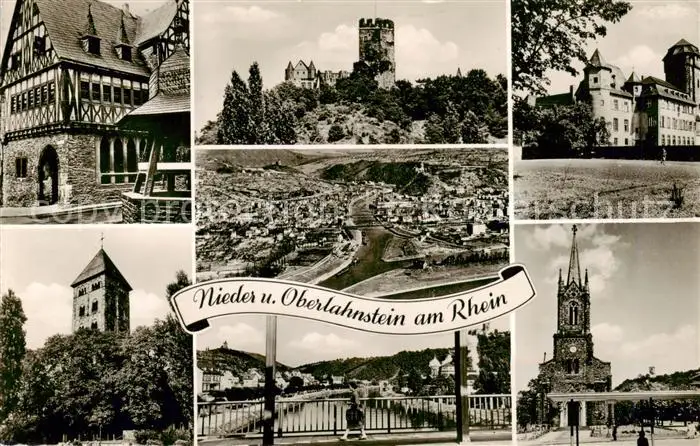 AK / Ansichtskarte 73835102 Niederlahnstein mit Oberlahnstein Fachwerkhaeuser Tuerme Schloss Kirche Niederlahnstein