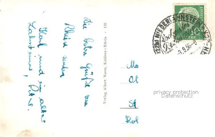 73835102 Niederlahnstein mit Oberlahnstein Fachwerkhaeuser Tuerme Schloss Kirche Niederlahnstein postalisch gelaufen 1956 Erhaltung siehe scans [WerneD78] [WernPID7 ]