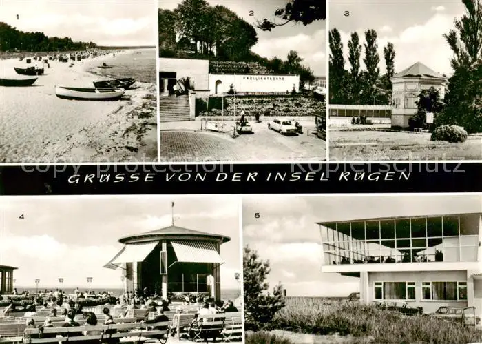 AK / Ansichtskarte 73835115 Ruegen_Insel Thiessow Strand Sellin Freilichtbuehne Goehren Musikpavillon Binz Konzertpavillon vor dem Kurhaus Baabe HO Gaststaette Inselparadies am Strand