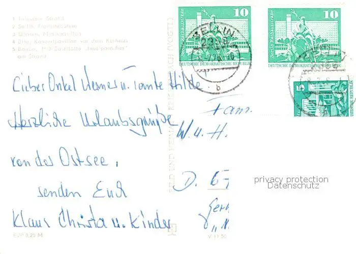 73835115 Ruegen_Insel Thiessow Strand Sellin Freilichtbuehne Goehren Musikpavillon Binz Konzertpavillon vor dem Kurhaus Baabe HO Gaststaette Inselparadies am Strand postalisch gelaufen 1976 Erhaltung siehe scans [WerneD78] [WernPID7 ]