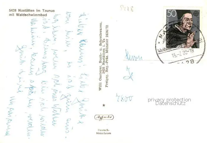 73835128 Nastaetten_Taunus Fliegeraufnahme mit Waldschwimmbad Nastaetten_Taunus postalisch gelaufen 1980 Erhaltung siehe scans [WerneD78] [WernPID7 ]
