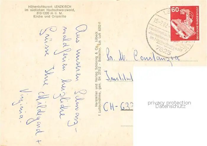 73835144 Lenzkirch Fliegeraufnahme mit Kirche und Ortsmitte Lenzkirch postalisch gelaufen 1982 Erhaltung siehe scans [WerneD78] [WernPID7 ]