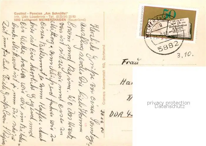 73835168 Meinerzhagen Gasthof Pension Am Schnueffel Gastraeume Tiergehege Meinerzhagen postalisch gelaufen 1980 Erhaltung siehe scans [WerneD78] [WernPID7 ]