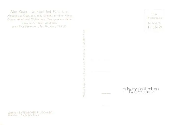 73835434 Fuerth_Bayern Alte Veste Althistorische Gaststaette Fliegeraufnahme Fuerth Bayern postalisch nicht gelaufen nach 1965 Erhaltung siehe scans [WerneD78] [WernPID7 ]
