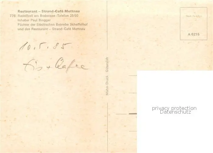 73835496 Radolfzell_Bodensee Restaurant Strand Cafe Mettnau Radolfzell Bodensee postalisch nicht gelaufen 1985 Erhaltung siehe scans [WerneD78] [WernPID7 ]