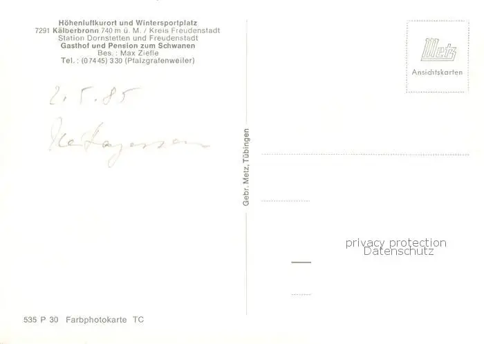 73835499 Kaelberbronn_Pfalzgrafenweiler Gasthof Pension zum Schwanen postalisch nicht gelaufen nach 1965 Erhaltung siehe scans [WerneD78] [WernPID7 ]