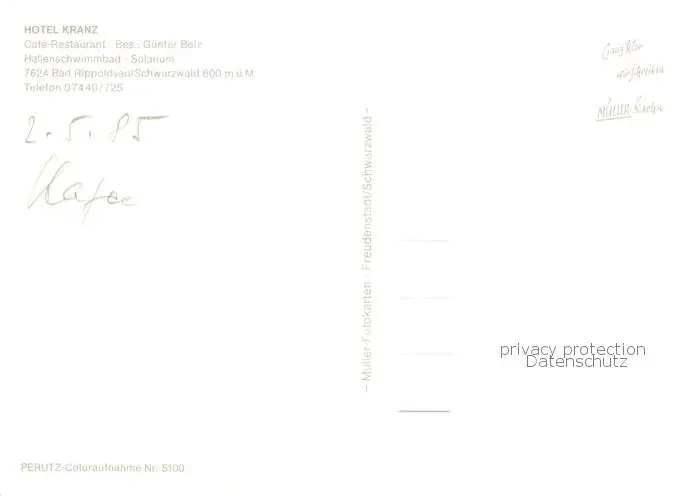 73835503 Bad_Rippoldsau_Schwarzwald Hotel Kranz Cafe Bad_Rippoldsau postalisch nicht gelaufen 1985 Erhaltung siehe scans [WerneD78] [WernPID7 ]