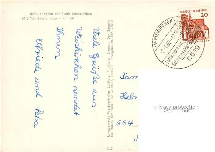 73835571 Weiskirchen_Saar Schullandheim der Stadt Saarbruecken Fliegeraufnahme Weiskirchen Saar postalisch gelaufen 1966 Erhaltung siehe scans [WerneD78] [WernPID7 ]