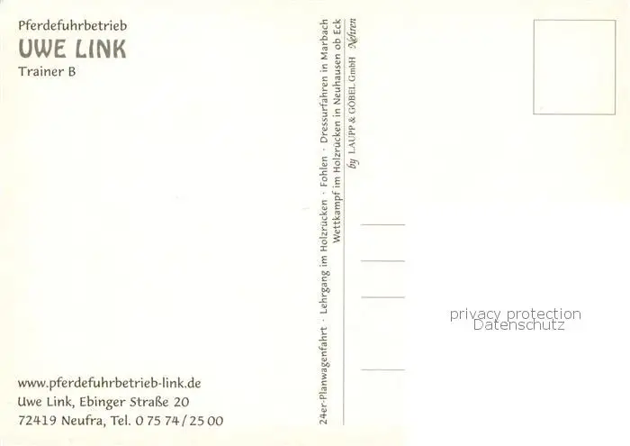73835690 Neufra_Hohenzollern Pferdefuhrbetrieb Uwe Link Trainer B Planwagenfahren Holzruecken Fohlen Dressurfahren Neufra_Hohenzollern postalisch nicht gelaufen nach 1965 Erhaltung siehe scans [WerneD78] [WernPID7 ]