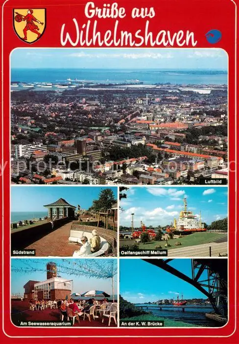 AK / Ansichtskarte 73836110 Wilhelmshaven Stadtpanorama Luftbild Strand oelfangschiff Mellum Seewasseraquarium Kaiser Wilhelm Bruecke Wilhelmshaven