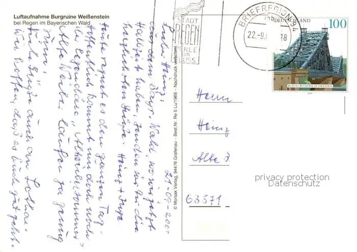 73836187 Regen Burgruine Weissenstein Fliegeraufnahme Regen postalisch gelaufen 2001 Erhaltung siehe scans [WerneD78] [WernPID7 ]