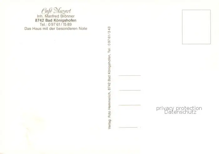 73836237 Bad_Koenigshofen Cafe Mozart Bad_Koenigshofen postalisch nicht gelaufen nach 1965 Erhaltung siehe scans [WerneD78] [WernPID7 ]
