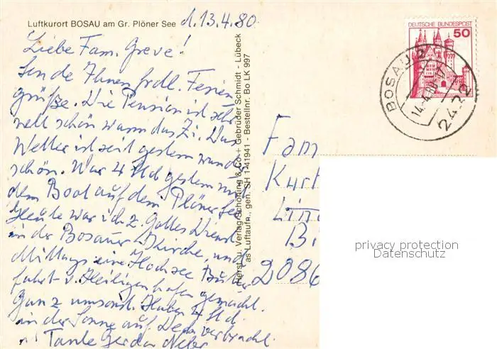 73836279 Bosau am Grossen Ploener See Fliegeraufnahme Bosau postalisch gelaufen 1980 Erhaltung siehe scans [WerneD78] [WernPID7 ]