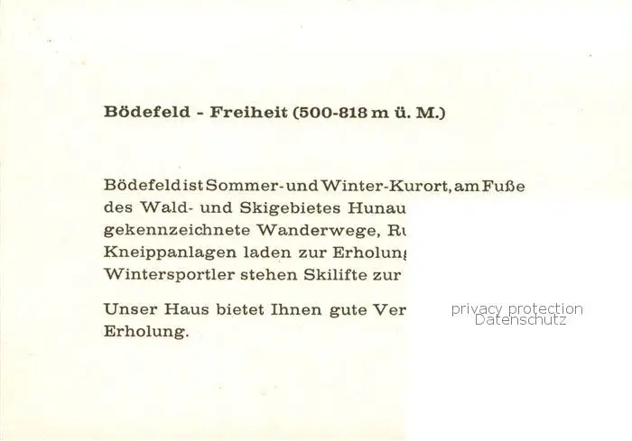 73837314 Boedefeld Cafe Hunaustube Wassertretanlage Panorama Viehauftrieb Schlepplift Boedefeld postalisch nicht gelaufen nach 1965 Werbekarte (keine Postkarte) Erhaltung siehe scans [WerneD78] Werbekarte (keine Postkarte)[WernPID7 ]