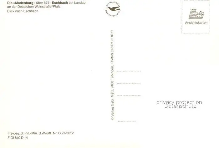 73837995 Eschbach_Pfalz Madenburg an der Deutschen Weinstrasse Eschbach Pfalz postalisch nicht gelaufen nach 1965 Fliegeraufnahme Erhaltung siehe scans [FriedD77] Fliegeraufnahme[Frierer ]