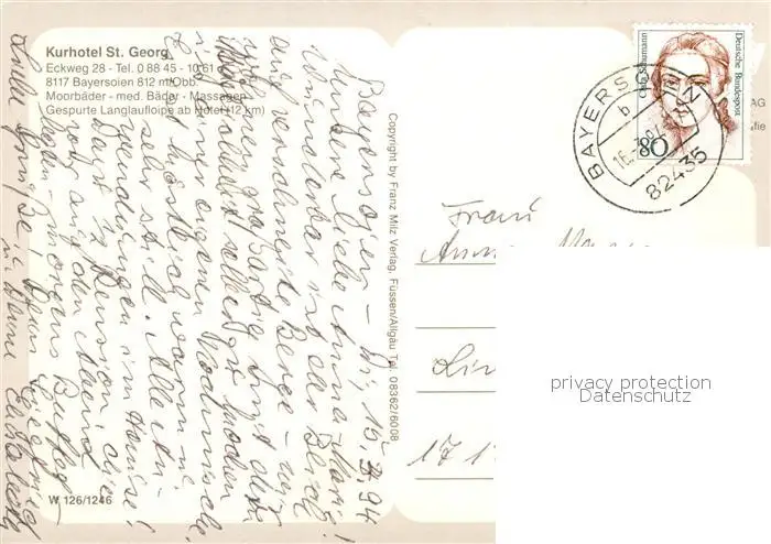 73838040 Bayersoien_Bad Kurhotel St. Georg Kuranwendung Restaurant Pferdeschlitten Bayersoien_Bad postalisch gelaufen 1994 Erhaltung siehe scans [FriedD77] [Frierer ]