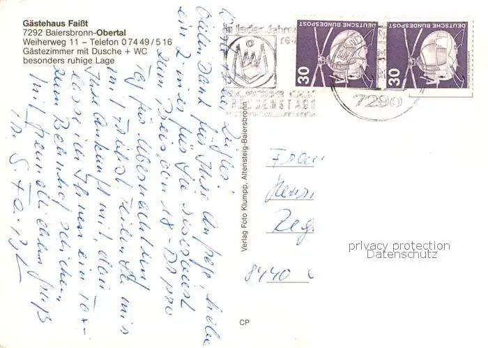 73838050 Obertal_Baiersbronn Gaestehaus Faisst Obertal Baiersbronn postalisch gelaufen nach 1965 Erhaltung siehe scans [FriedD77] [Frierer ]