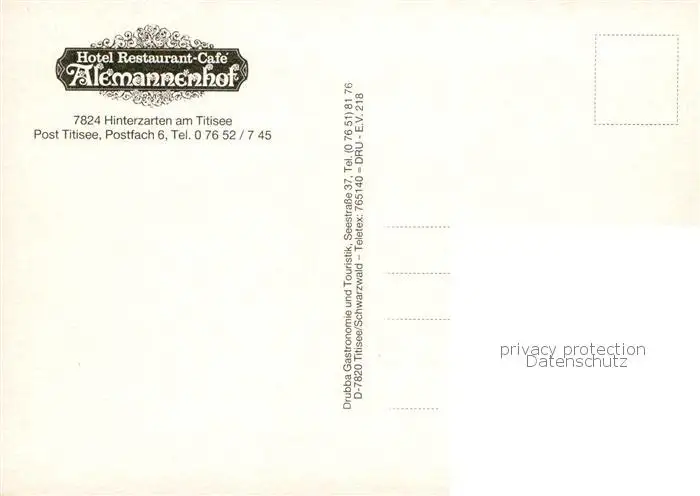 73838113 Titisee Hotel Restaurant Cafe Alemannenhof Titisee postalisch nicht gelaufen nach 1965 Erhaltung siehe scans [WerneD78] [WernPID7 ]