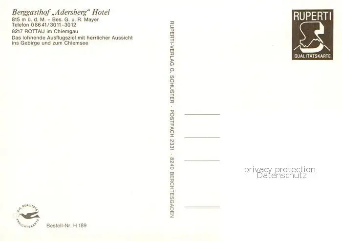 73838212 Rottau_Chiemgau Berggasthof Adersberg Hotel Rottau Chiemgau postalisch nicht gelaufen nach 1965 Erhaltung siehe scans [WerneD78] [WernPID7 ]