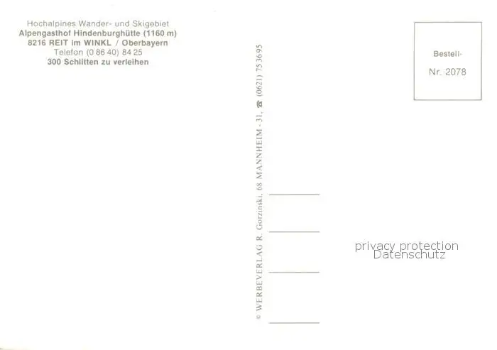 73838279 Reit_Winkl Alpengasthof Hindenburghuette Reit_Winkl postalisch nicht gelaufen nach 1965 Erhaltung siehe scans [WerneD78] [WernPID7 ]