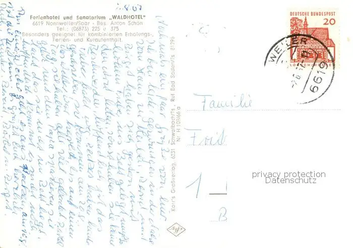 73839602 Nonnweiler Kirche Sanatorium Waldhotel Nonnweiler postalisch gelaufen 1967 Erhaltung siehe scans [WerneD78] [WernPID7 ]