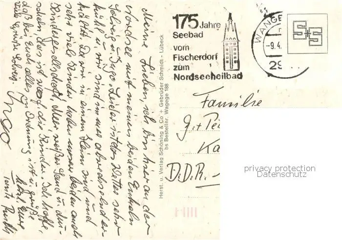 73839679 Wangerooge_Wangeroog_Nordseebad Faehrschiff Am Anleger Strand am Cafe Pudding Inselbahn Meerwasser Schwimmbad Fliegeraufnahme Erhaltung siehe scans [FriedD77] Fliegeraufnahme[Frierer ]