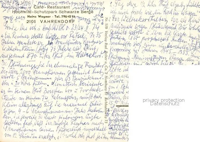 73839709 Vahrendorf_Siedlung Cafe Restaurant Hochwild Schutzpark Schwarze Berge Hirsch Wisente Vahrendorf Siedlung postalisch nicht gelaufen nach 1965 Erhaltung siehe scans [FriedD77] [Frierer ]